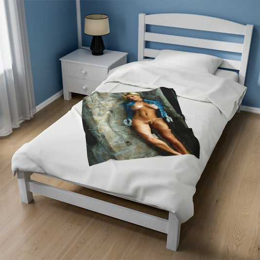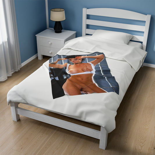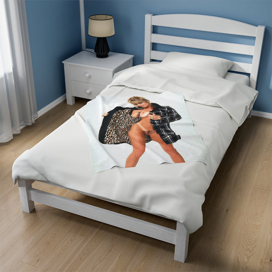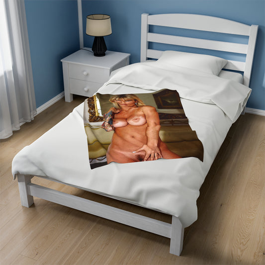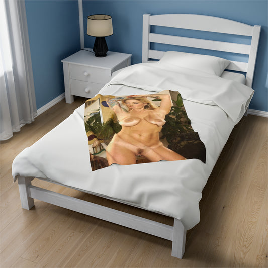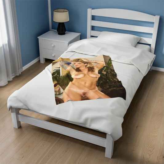 Velveteen Plush Blanket Retro Adult Star Janine Lindenmulder Nude